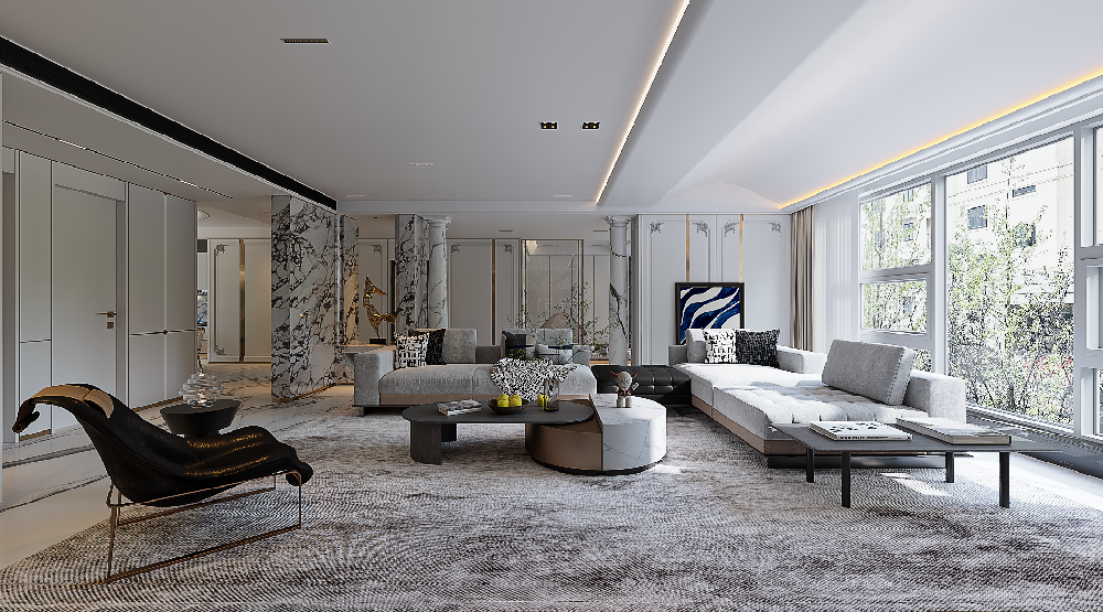 • 【裝修頭條】貴陽大平層裝修完工案例,未來方舟G6組團288平米意式極簡風格設計!